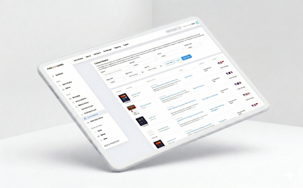 The Content Monitor gives studios a clean view of where their games are being covered, broken down by studio, game and market.